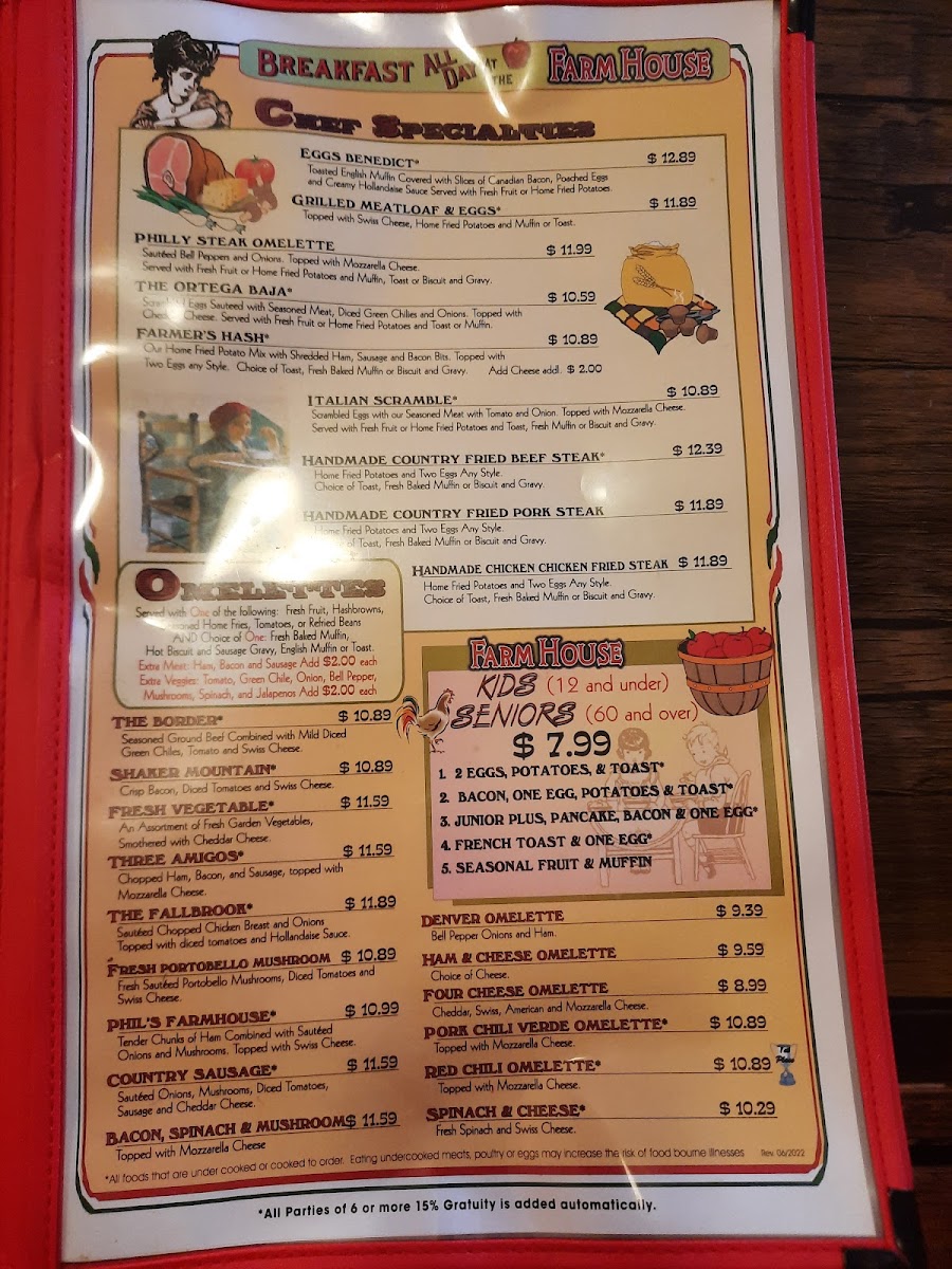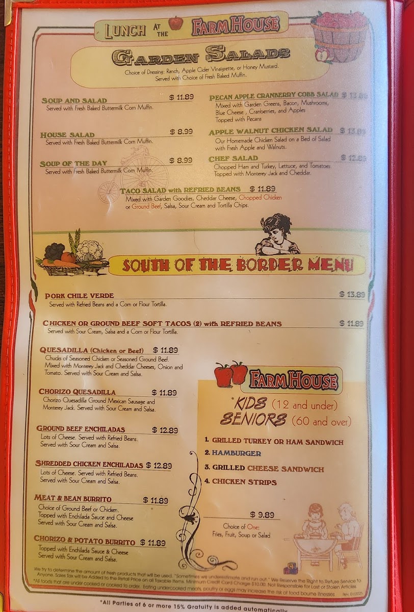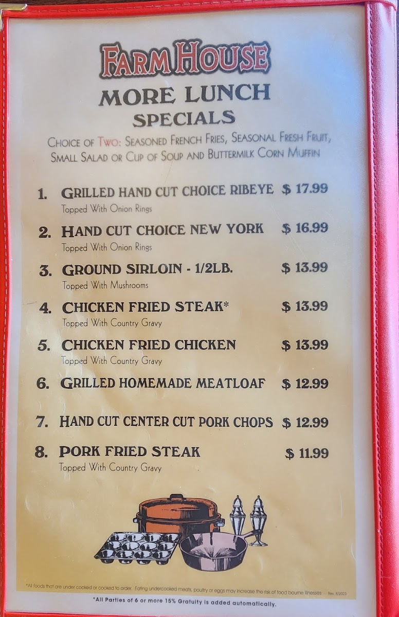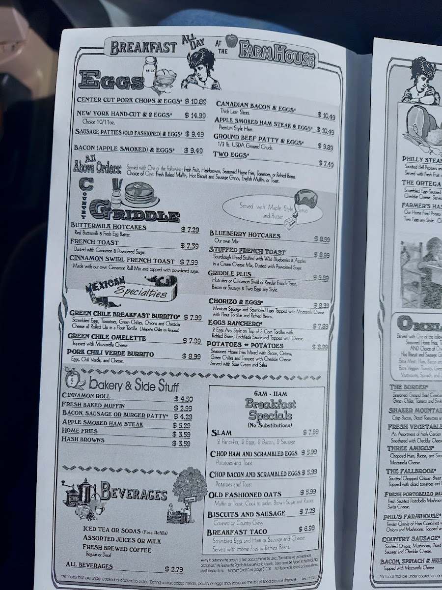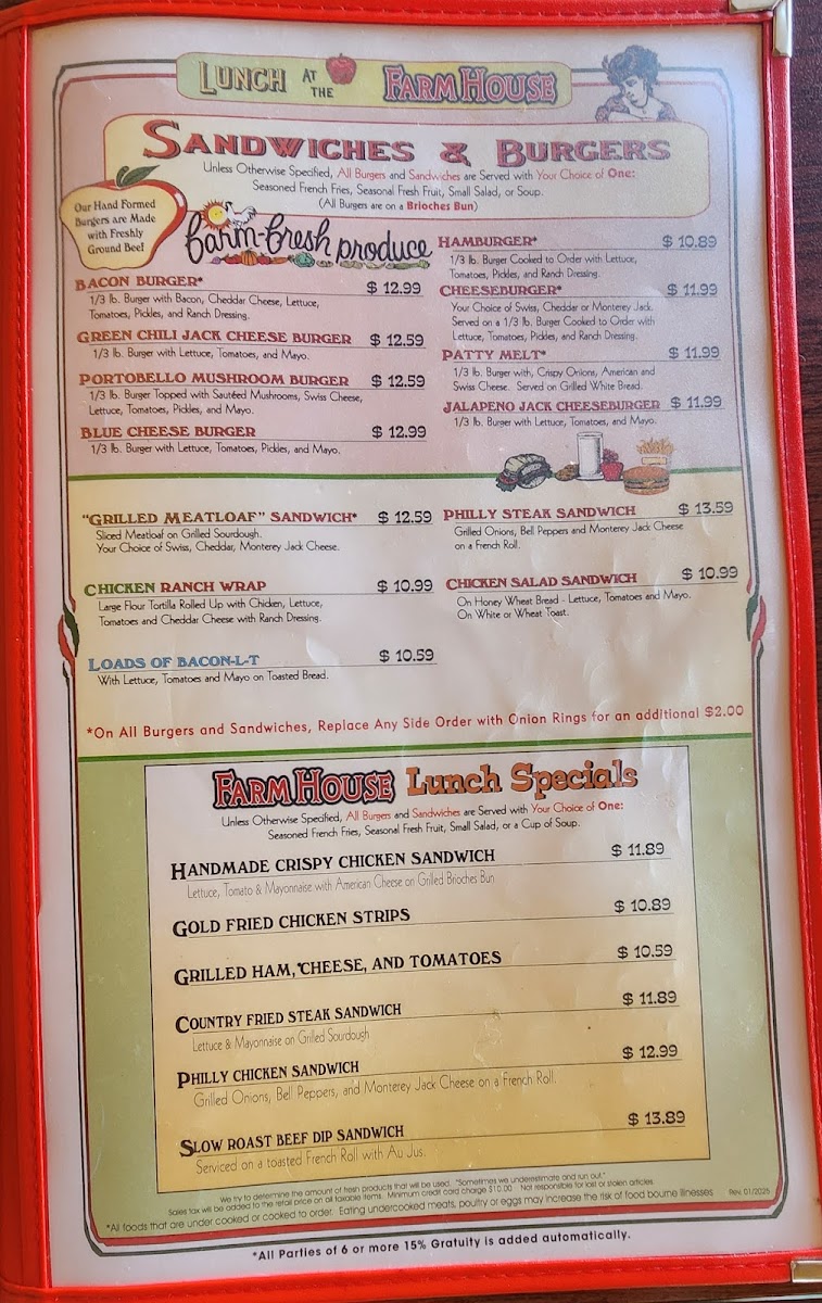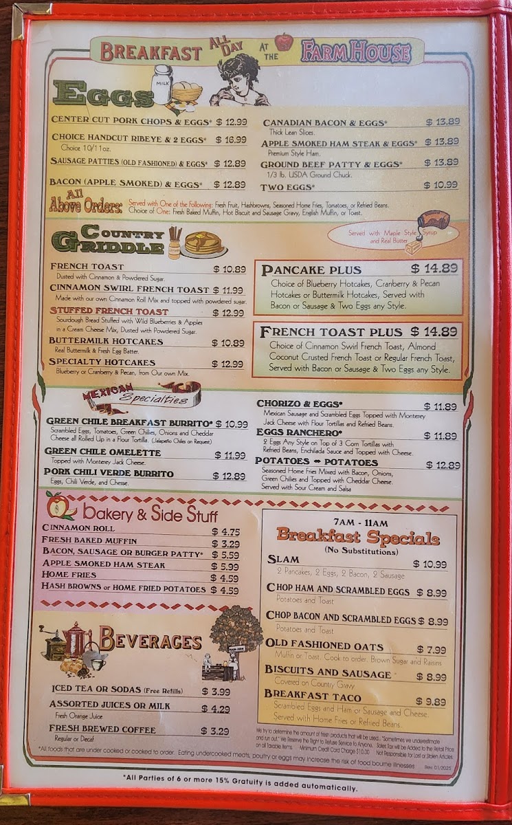 Farmhouse Restaurant Menu